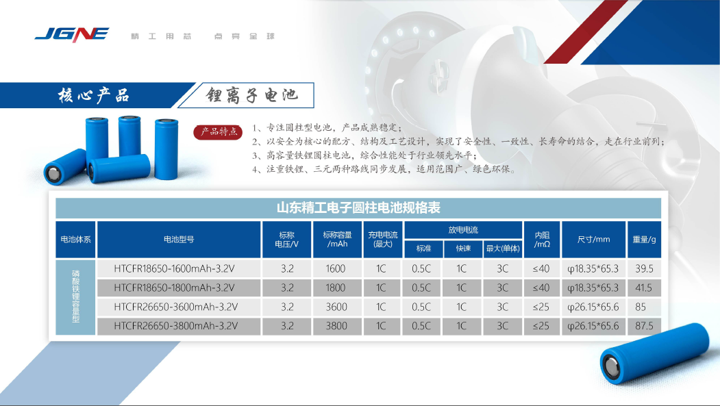 山東精工電子科技有限公司(品牌:精工 JGNE)成立于2008年,是中國(guó)航天科工集團(tuán)旗下的一家高新技術(shù)企業(yè)。山東精工JGNE的主要產(chǎn)品:超級(jí)電容、鋰離子電池等,致力于新能源產(chǎn)品的研發(fā)應(yīng)用并使其產(chǎn)業(yè)化。主要客戶包括中船重工、美國(guó)通用電器GE、英國(guó)PK、德國(guó)BMZ等國(guó)內(nèi)外知名企業(yè)。